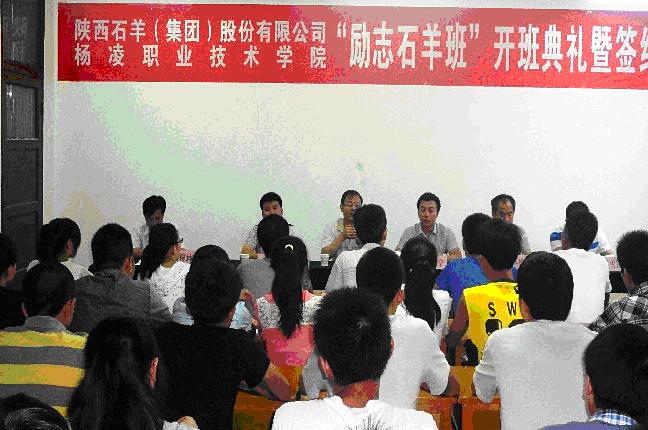 會(huì)上,楊凌職業(yè)技術(shù)學(xué)院動(dòng)物工程學(xué)院王書(shū)記對(duì)第二屆“勵(lì)志石羊班”的開(kāi)班表示熱烈祝賀,對(duì)石羊集團(tuán)給予學(xué)校教學(xué)改革的支持表示感謝,對(duì)校企合作所取得的成績(jī)做了充分肯定,對(duì)加入訂單班的學(xué)生提出了幾點(diǎn)要求。周博寧總經(jīng)理簡(jiǎn)要介紹了石羊集團(tuán)情況,對(duì)加入石羊班的同學(xué)表示歡迎,勉勵(lì)同學(xué)們要珍惜機(jī)會(huì),努力學(xué)習(xí),早日成才。