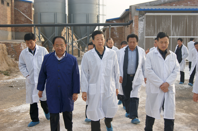 11月11日,由渭南市副市長吳蟒成帶隊(duì),成員由各縣(市、區(qū))分管領(lǐng)導(dǎo)及畜牧(農(nóng)業(yè))局局長等一行50余人組成的全市建設(shè)陜西現(xiàn)代畜牧業(yè)示范區(qū)觀摩團(tuán)現(xiàn)場觀摩石羊集團(tuán)百萬只肉雞養(yǎng)殖示范園區(qū)建設(shè)情況,石羊集團(tuán)副總裁韓春元、石羊集團(tuán)肉雞事業(yè)部副總經(jīng)理何東力陪同觀摩。