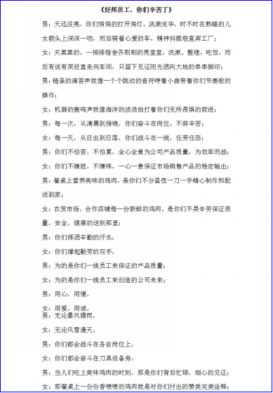 18點(diǎn)30分,大會(huì)圓滿落下帷幕,讓我們共同祝愿涇河食品公司,再創(chuàng)佳績(jī),祝愿公司在大家的共同努力下,更上一層樓。