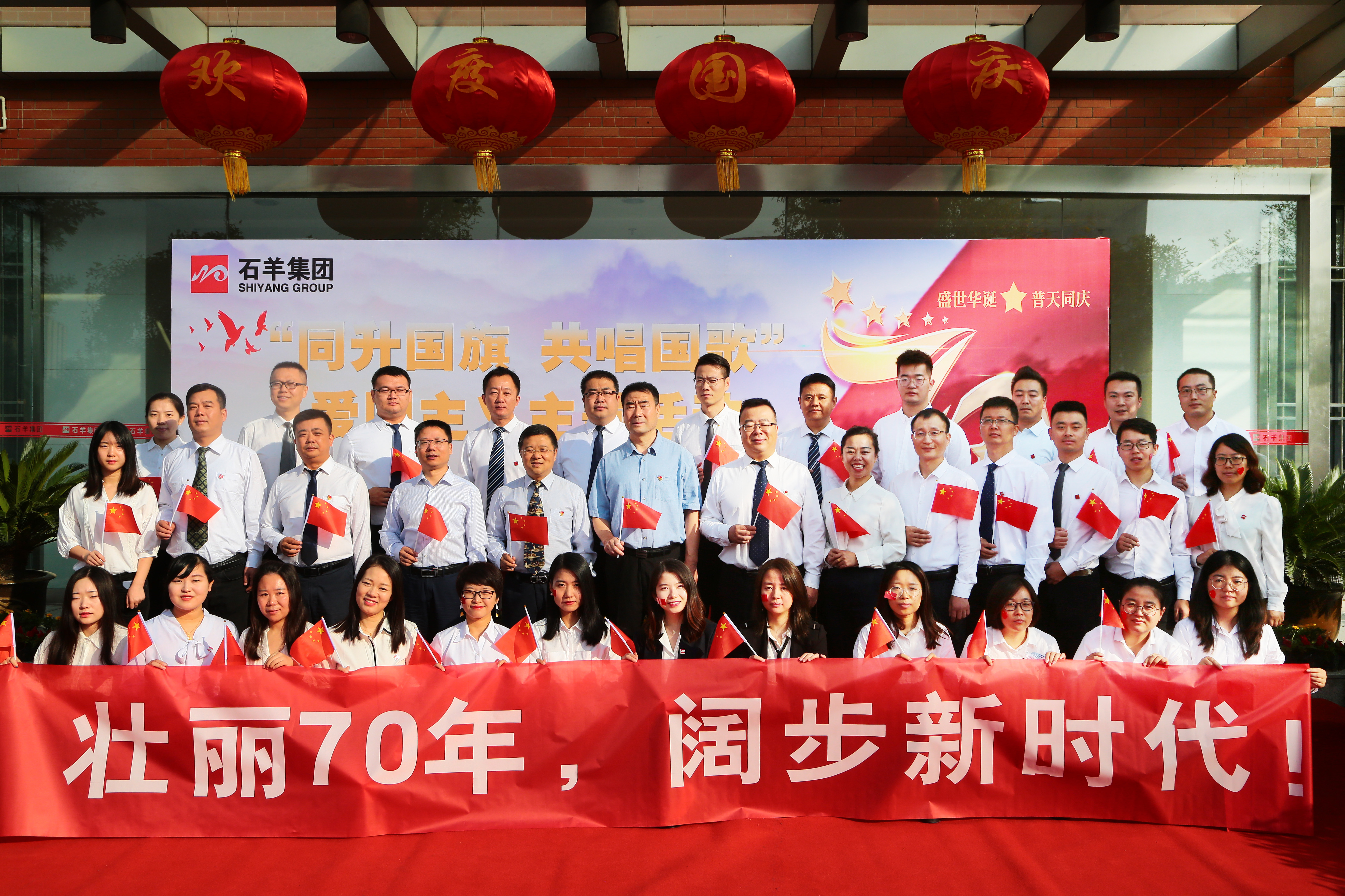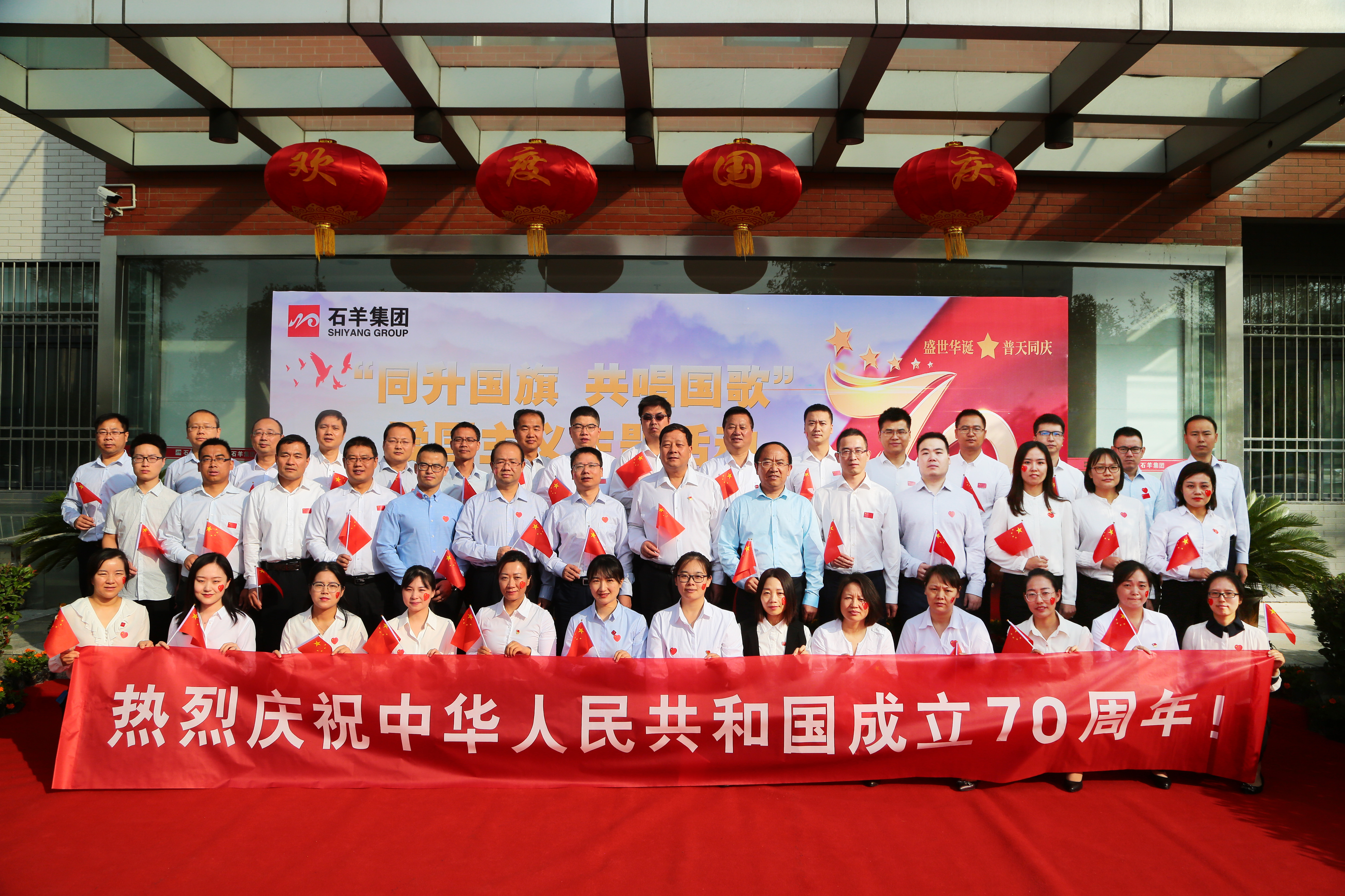 今天,我們用這樣特別的方式獻禮新中國70華誕,以此表達我們對共和國70周歲的生日祝福,也通過這種方式,進一步激發(fā)集團全體員工的愛國之情、報國之志,抒發(fā)愛國主義情懷,營造“共慶祖國華誕、共享偉大榮光、共筑復(fù)興偉業(yè)”的濃厚氛圍,充分展現(xiàn)石羊集團全體員工積極向上的精神風(fēng)貌。