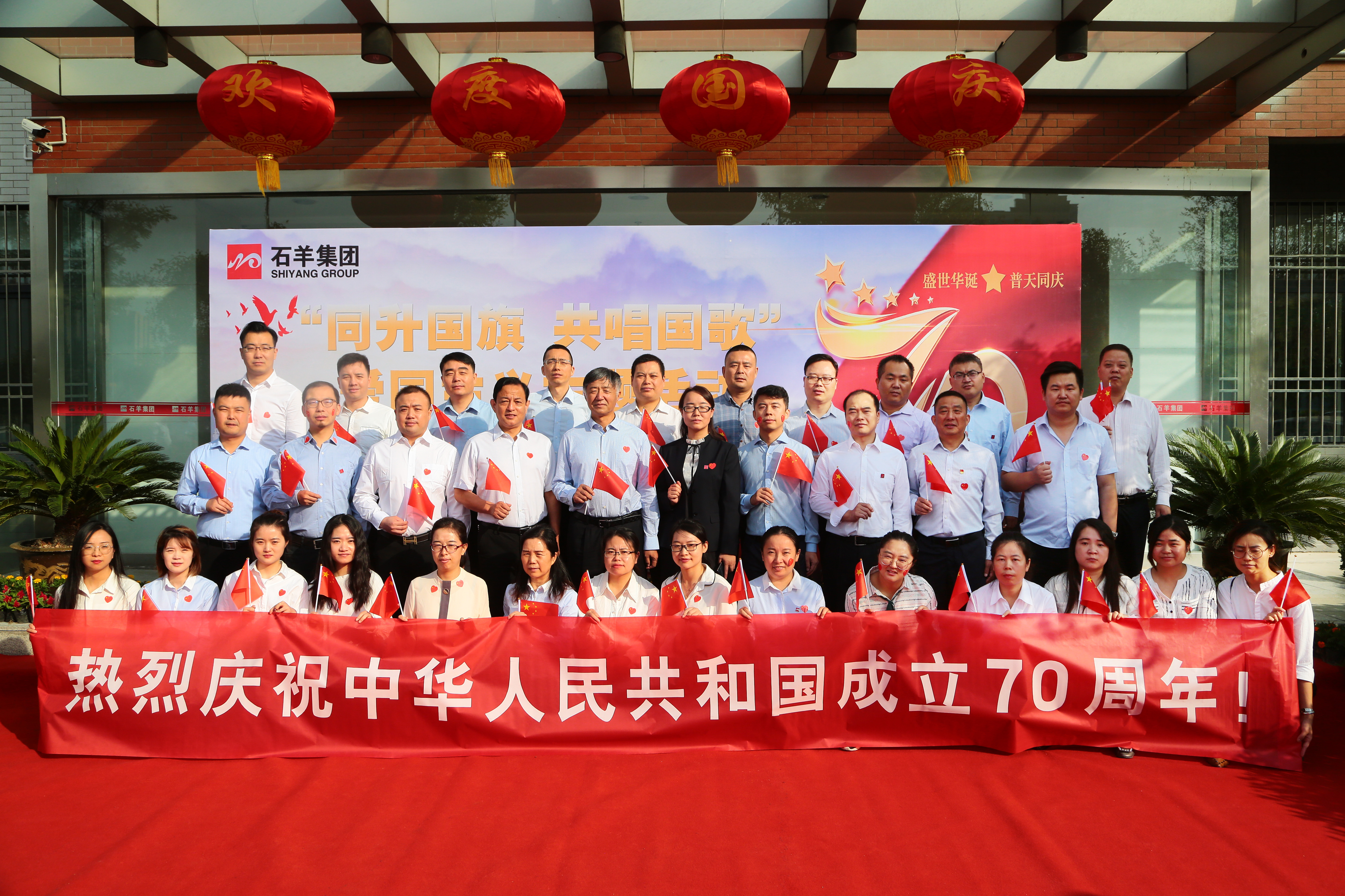 七十年波瀾壯闊,七十年風(fēng)雨兼程。為熱烈慶祝中華人民共和國成立70周年,激發(fā)廣大員工的愛國熱情,9月23日上午石羊集團在總部大樓前隆重舉行“同升國旗 共唱國歌”愛國主義主題活動,來自集團領(lǐng)導(dǎo)及各產(chǎn)業(yè)負責(zé)人、集團總部及各產(chǎn)業(yè)總部全體人員共120余人共同為祖國獻上最誠摯的祝福。