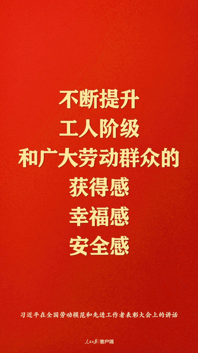 光榮屬于勞動者,幸福屬于勞動者。社會主義是干出來的,新時代是奮斗出來的。勞動模范是民族的精英、人民的楷模,是共和國的功臣。我國是人民當(dāng)家作主的社會主義國家,黨和國家始終堅持全心全意依靠工人階級方針,始終高度重視工人階級和廣大勞動群眾在黨和國家事業(yè)發(fā)展中的重要地位,始終高度重視發(fā)揮勞動模范和先進(jìn)工作者的重要作用。立足新發(fā)展階段,貫徹新發(fā)展理念,構(gòu)建新發(fā)展格局,推動高質(zhì)量發(fā)展,必須緊緊依靠工人階級和廣大勞動群眾。我國工人階級和廣大勞動群眾要更加緊密地團(tuán)結(jié)在黨中央周圍,勤于創(chuàng)造、勇于奮斗,努力在全面建設(shè)社會主義現(xiàn)代化國家新征程上創(chuàng)造新的時代輝煌、鑄就新的歷史偉業(yè)。——習(xí)近平