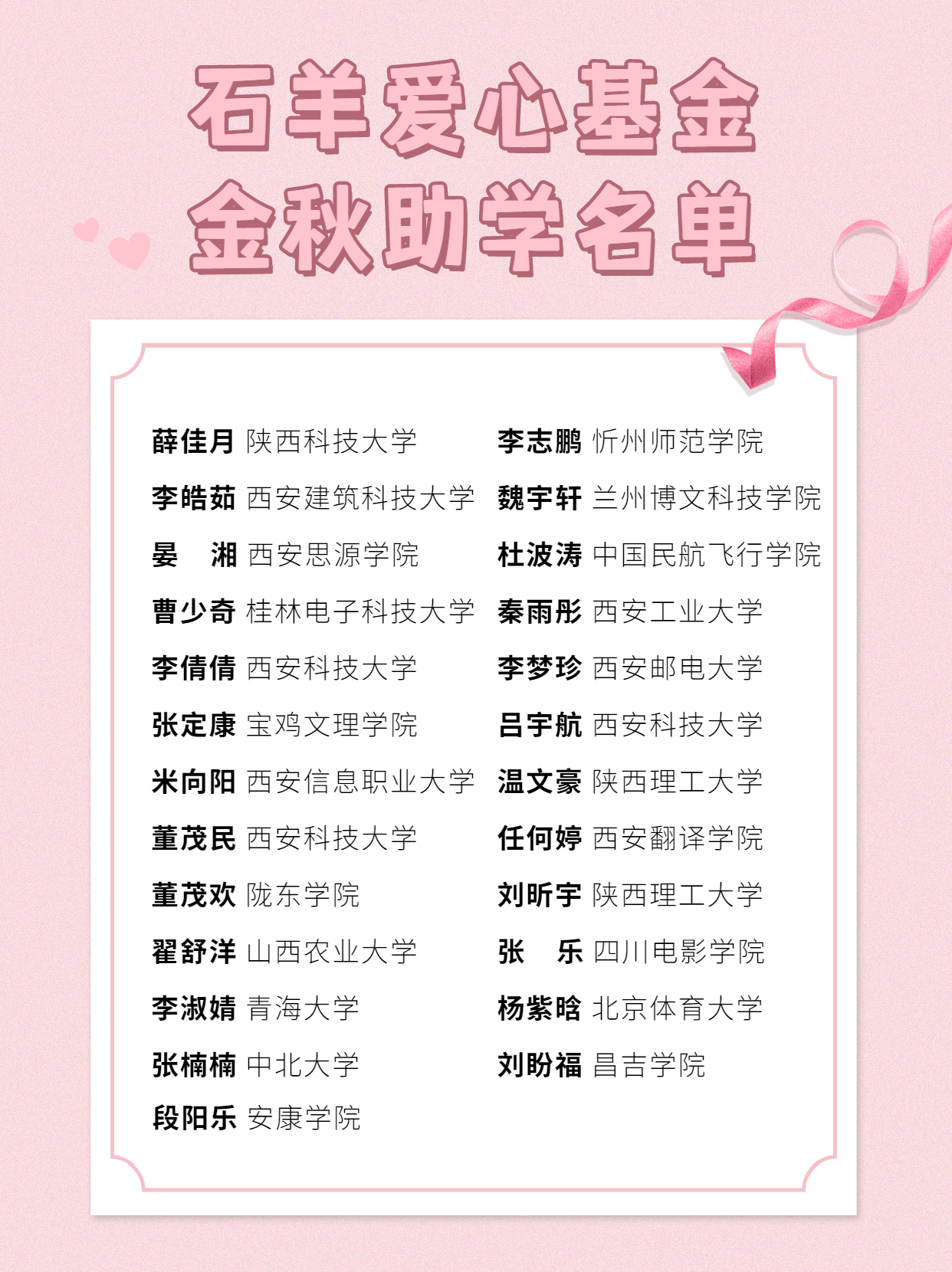 一年一度的石羊愛心基金“金秋助學(xué)”活動(dòng)在西安邦淇公司拉開帷幕,經(jīng)愛心基金管理委員會(huì)篩選審核,本年度為25名困難員工子女及上下游困難客戶子女發(fā)放助學(xué)金101000元。