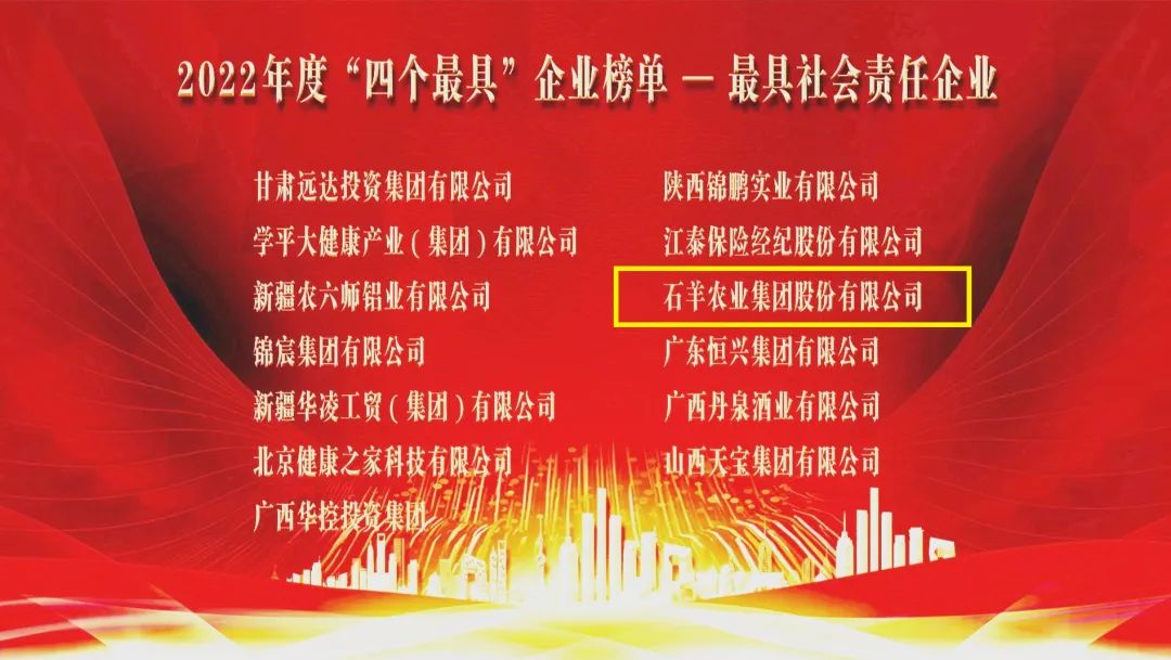 此次榮獲2022年度“最具社會責(zé)任企業(yè)”殊榮,再次彰顯了石羊集團30余年來始終堅守農(nóng)業(yè)報國、產(chǎn)業(yè)報國,堅定做好食品、為客戶創(chuàng)造價值的同時,積極履行社會責(zé)任,實現(xiàn)企業(yè)高質(zhì)量發(fā)展。