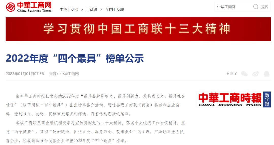 評選榜單經(jīng)各地方工商聯(lián)、商會推薦和企業(yè)自薦,中華工商時報社“四個最具”推選委員會辦公室初選以及推選委員會復(fù)核審定產(chǎn)生。“2022最具社會責(zé)任企業(yè)”榜單從抗擊疫情、抗洪救災(zāi)、參與“萬企幫萬村”等方面進行認(rèn)定。