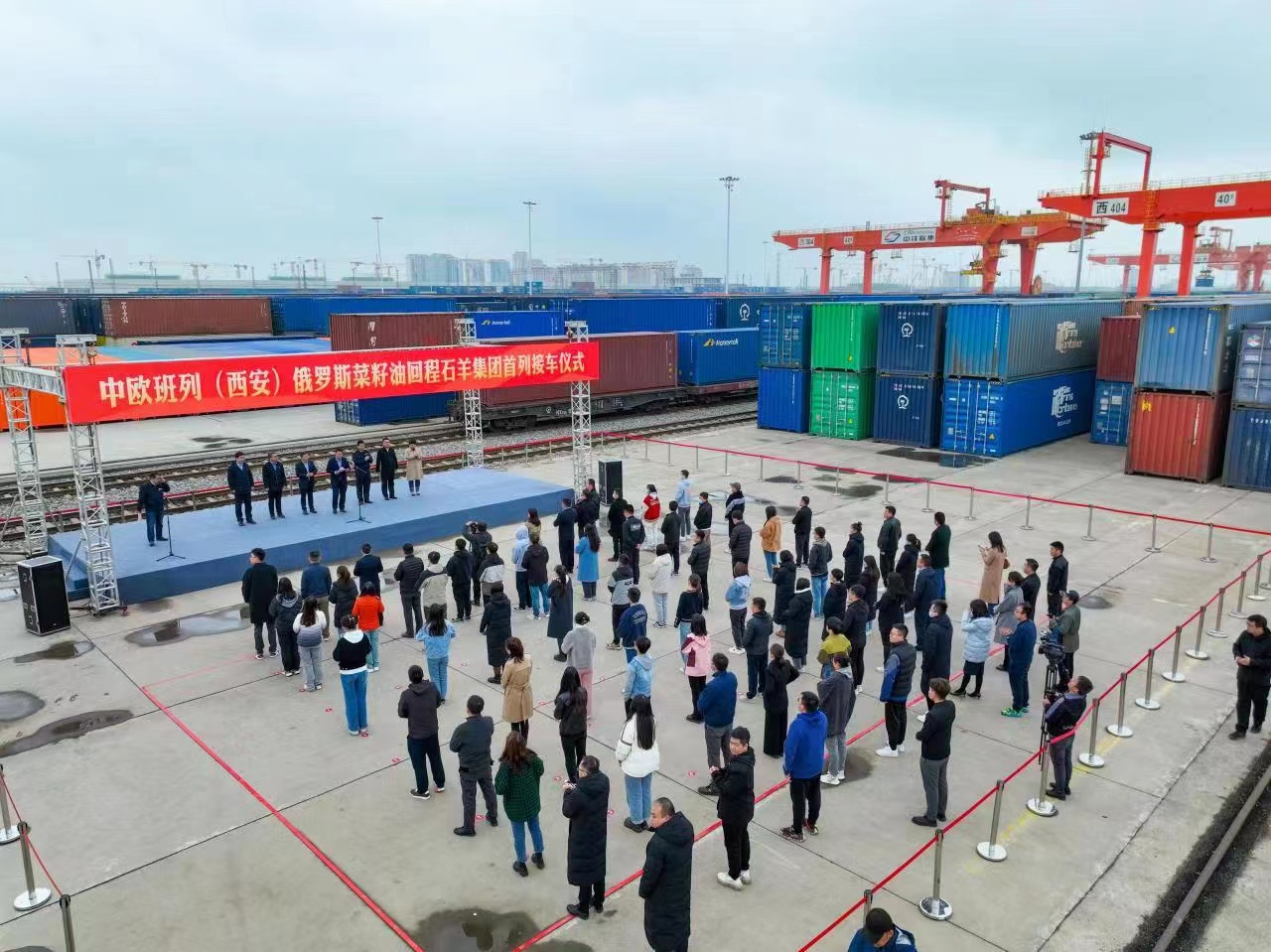 2023年4月24日,中歐班列長(zhǎng)安號(hào)俄羅斯回程菜籽油石羊集團(tuán)專列順利抵達(dá)西安國(guó)際港站。
