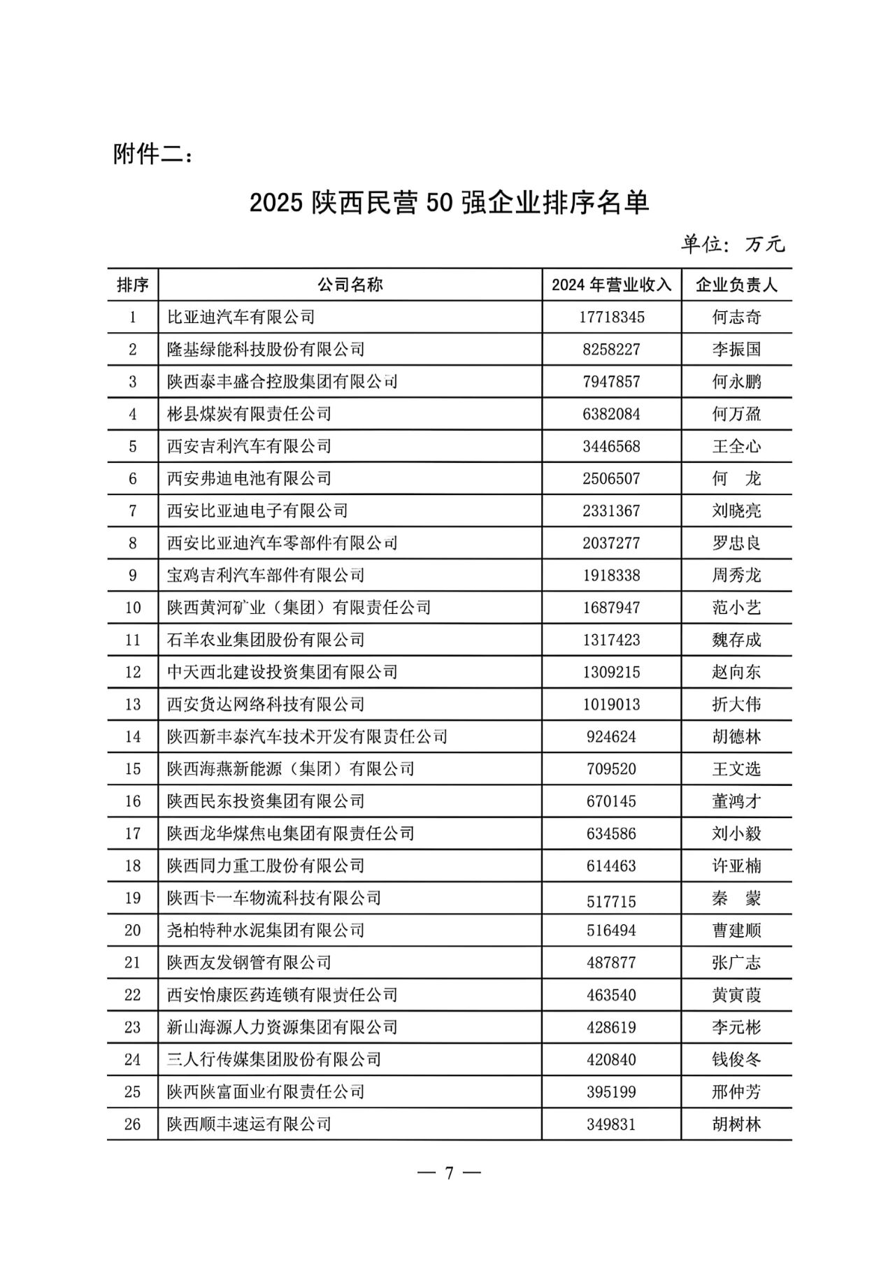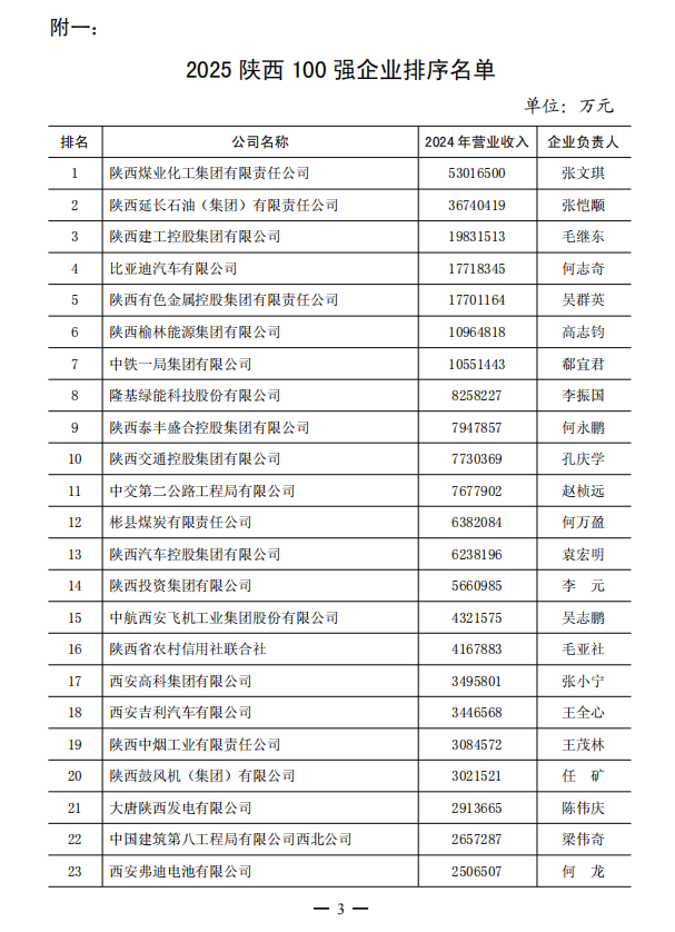 2025年,在陜西省發(fā)改委、工信廳、財政廳、人社廳、商務(wù)廳、國資委、統(tǒng)計局、省委金融辦、省總工會等部門的大力支持下,陜西省企業(yè)家協(xié)會繼續(xù)組織開展了2025陜西100強企業(yè)和陜西民營50強企業(yè)排序工作并編印了《2025陜西100強企業(yè)分析報告》。